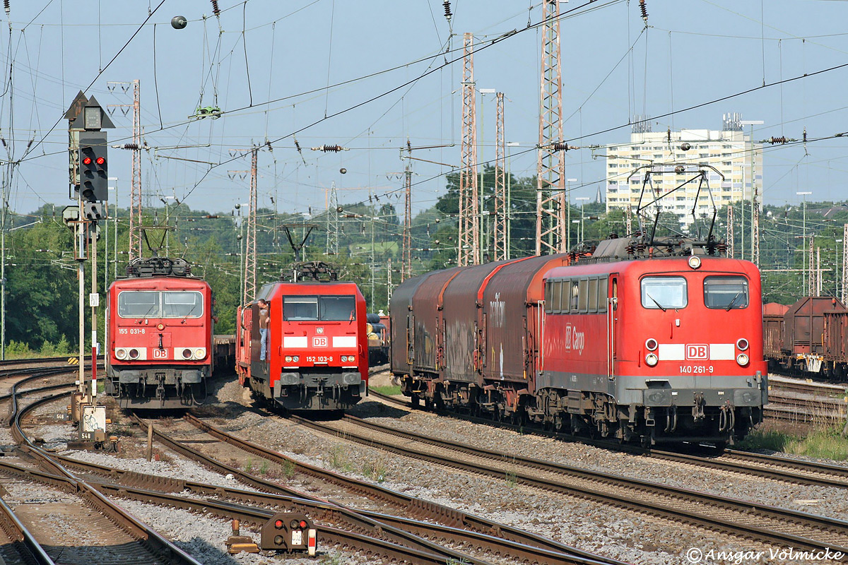Km 75,915 Bahnhof Hagen-Vorhalle [EHGV] StreckenanfangStau in Vorhalle am 16. Juli 2015; während 155 031 und 152 103 an den Zwischensignalen der Strecke 2820 auf die Weiterfahrt in die Einfahrgruppe warten, ist 140 261 mit ihrem Kurzzug rechts auf den ersten Metern der Linie 2803 zum Stehen gekommen. Ansgar Völmicke konnte die nicht alltägliche Szene mit seiner Kamera bildlich festhalten.