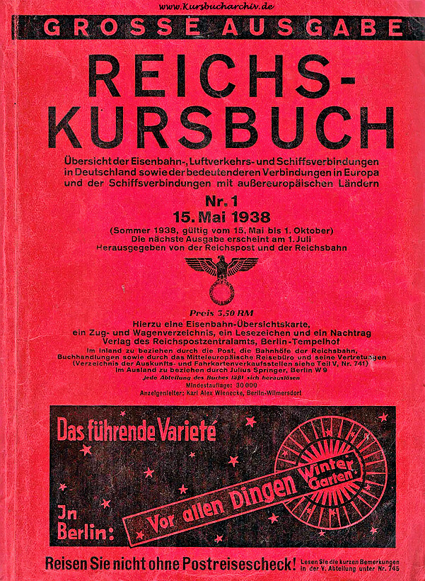 Im großen Reichskursbuch für den Sommer 1938 findet sich der Fahrplan der Strandbahn nur noch kurz erwähnt auf den Seiten für die Kleinbahnen, wie hier zu sehen: