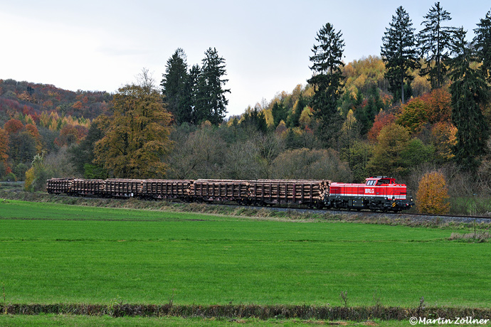 Am 14. November 2019 konnte nach langer Zeit mal wieder ein Güterzug im Röhrtal (hier mit RLG 57 bei Müschede) gesichtet werden, nachdem zuletzt im September 2014 etwas Rohholz für ein Rönkhauser Sägewerk angeliefert wurde. Aufgrund der nach zwei Jahren extremer Trockenheit anfallenden, enormen Mengen an schleunigst abzuerntendem Borkenkäferholz kam es nach Warstein auch in Sundern zu einer ersten Beladung mit dieser Fracht in Form von entastetem Langholz.