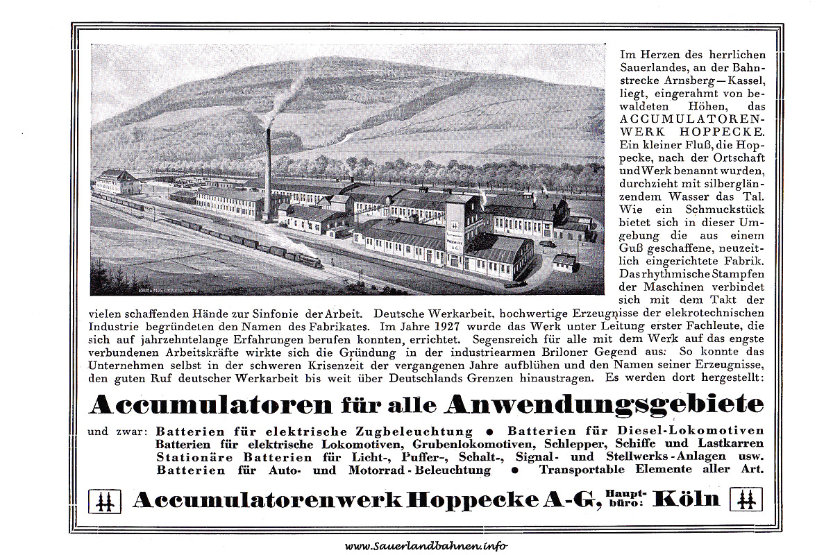 Hoppecke, Werbung Accumulatorenwerk von 1935![]() |