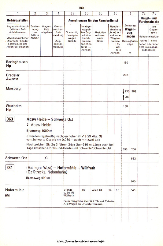 Streckenabschnitt Bahnhof Schwerte Ost bis km 0,030 Züge nachschieben planmäßig, auch mit zwei Loks zugelassen |