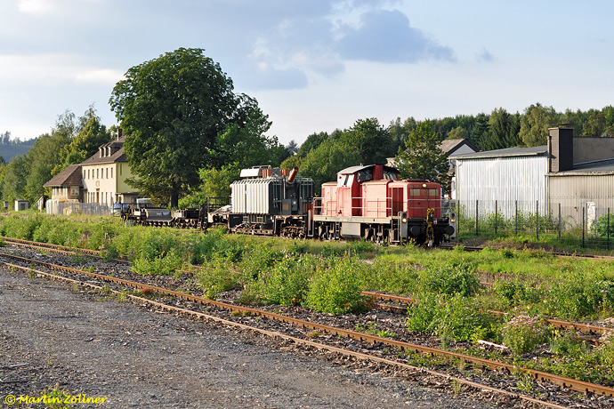 Am 04. September 2010 fand die Zustellung eines neuen 110 kV-Trafos zum Umspannwerk Bigge bei Olsberg statt. Der neue 80 Tonnen schwere SGB-Trafo ist hinter der Zuglok 294 723 auf dem sechsachsigen Tiefladewagen 35 80 993 6 211 der Gattung Uaaikks 764 verkettet, während am Zugschluß der 135 Tonnen aufnehmende, zehnachsige 86 80 995 0 912 der Gattung Uaai 806 zum Abtransport des alten Trafos bei der abendlichen Durchfahrt Wennemen zu sehen ist.