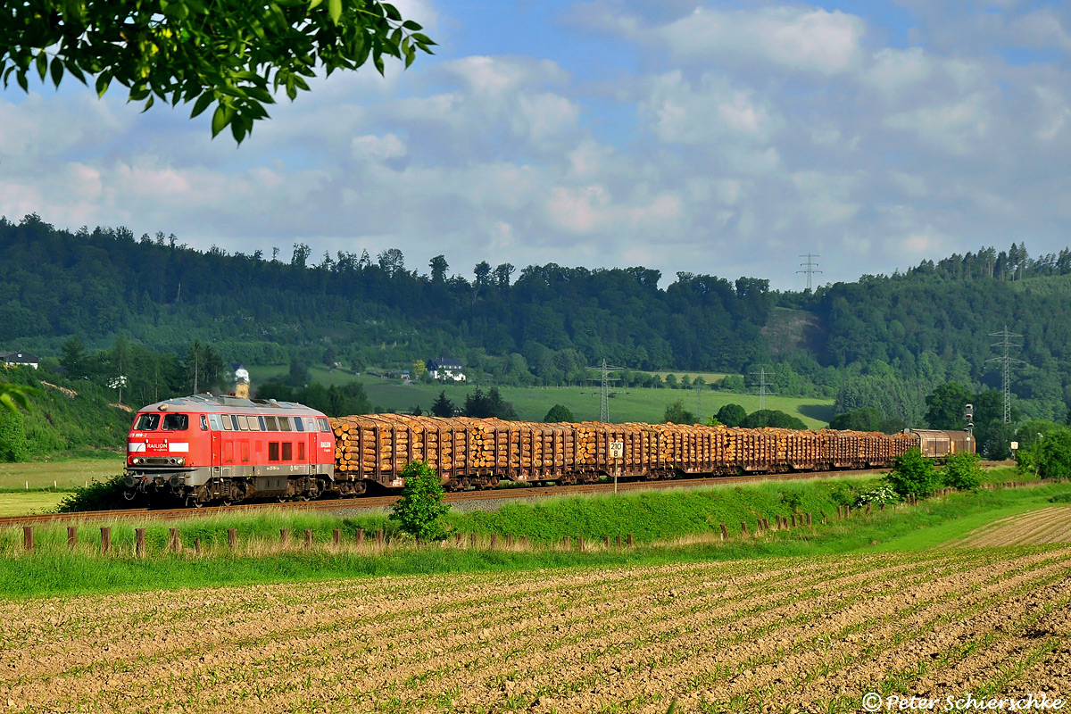 Tolle Wolkenbildung war am Morgen des 05. Juni 2013 über dem Oberen Ruhrtal zu verzeichnen. Peter Schierschke hatte das Glück des Tüchtigen, als der EK 63001 zum Eggerwerk am Feld bei Bockum vorbeikam, ließ sich gerade passend die Sonne blicken. Motorversuchträger 225 008 stellte 11 Tage vor Außerdienststellung nochmals die Traktion sicher.