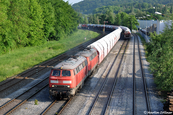 Der RWK-Übergabebahnhof Horlecke sollte im Laufe des Jahres 2012 in eine ortsbediente Ausweichanschlussstelle umgewandelt werden (Mitte Mai bereits Gleiserneuerungen), die Aufgaben des Zugleiters der Hönnetalbahn der Fahrdienstleiter in Menden übernehmen. Am 30.05.2012 fällt der Blick noch einmal auf den bisherigen Bahnhof mit dem von Menden einfahrenden Leerwagenzug EK 54425. Umleitungsbedingt sind zwei 225ger vorgespannt, die Planlok 294 671 schiebt nach.