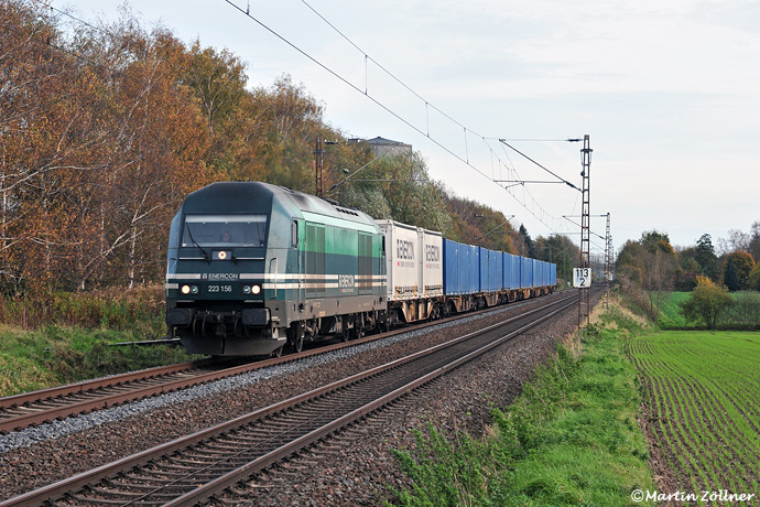 Jeden Werktag verkehrte bis Anfang 2015 der Pendelzug Emden – Lippstadt – Emden im Rahmen des Enercon-Netzwerkes. Am 31. Oktober 2014, einem Freitag, ist 223 156 der enerconeigenen e.g.o.o. spät dran, als sie auf dem Rückweg nach Emden um kurz nach 13 Uhr aus Soest entlang des Naturschutzgebietes Zuckerfabrik-Klärteiche ausfahrend bei Hattropholsen mit minimaler Herbstsonnenanstrahlung bildlich verewigt wurde.