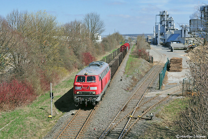 Am 20. April 2013 hat 225 008 die Bedienung des Eggerwerkes mit der samstäglichen Sonderleistung abgeschlossen und wartet nun am TUZ-Blaumelder auf die Fahrtfreigabe Richtung Brilon Wald. In unterschiedlichen Abständen gibt es beim Eggersägewerk immer wieder diese samstäglichen Zusatzrohholzzüge, die mal von DB Cargo von Schwerte aus oder auch mal durch Private von Warburg aus angeliefert werden.