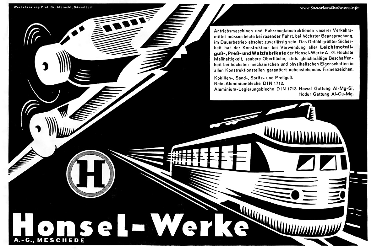 Honsel-Werke Meschede gegründet: 1908 Produkte: Leichtmetallguss-, Press- und Walzteile für Fahrzeugkonstruktionen des Verkehrs Status: produzierend |
