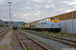 Für die große Herbstferienbaustelle 2022 zwischen Marsberg und Scherfede wurden am Mittag des 28. September die neuen Schienen geliefert. 215 082 brachte die lange Samms-Wagenschlange von Hagen Gbf nach Bestwig zur Zwischenabstellung, hier in der Westeinfahrt des Zielbahnhofs aufgenommen.
