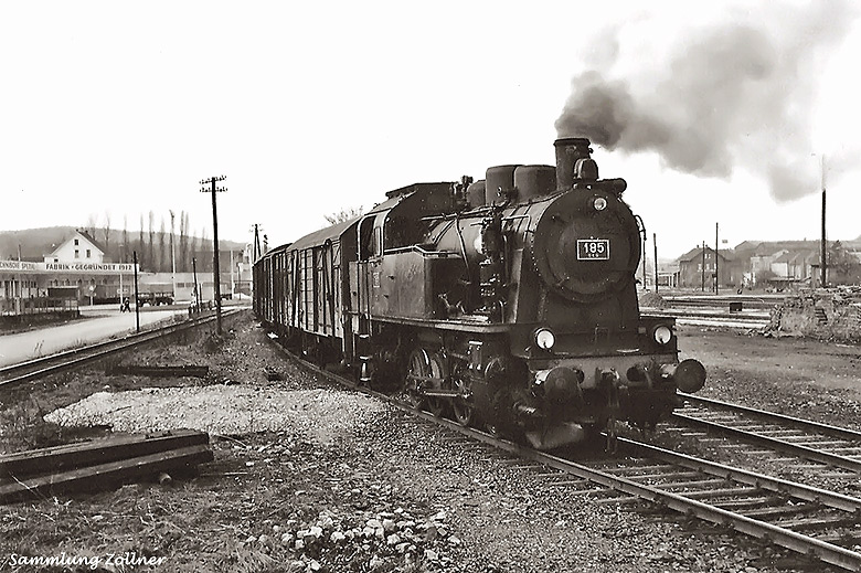 Leihlok WLE 44 hat den Ng 923 schon umfahren, als der Fotograf von erhöhtem Standpunkt das Umsetzen der Doppelwagen ins Ladegleis aufs Korn nimmt. Zu der Zeit fand auch noch sporadisch Güterumschlag am Stückgutschuppen statt, wie die an der Rampe über dem Traktor zu sehenden zwei Hbis-Wagen zeigen.